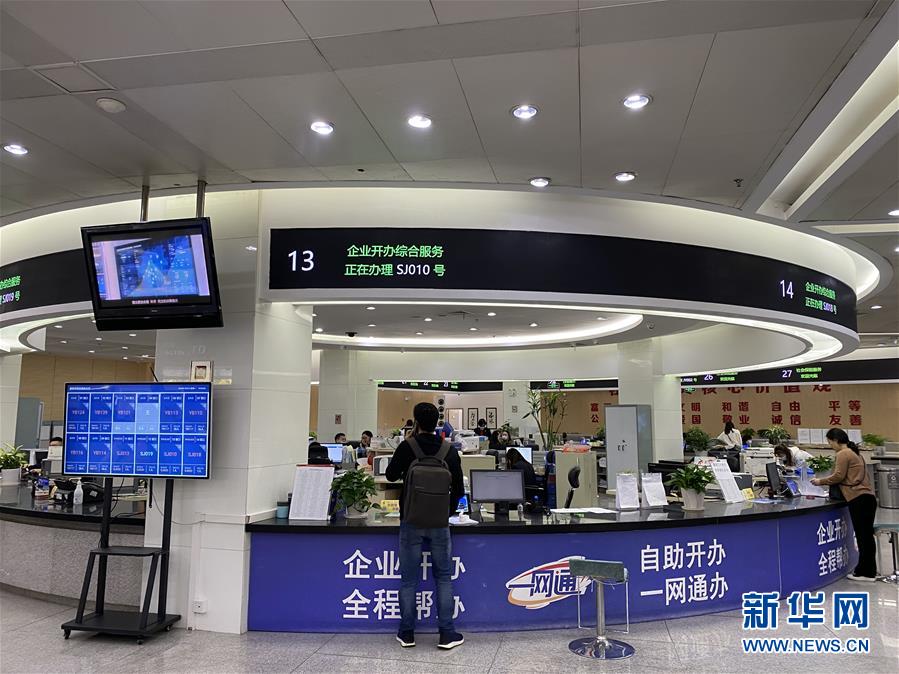 这是贵阳市人民政府政务大厅内设置的企业开办综合服务窗口(10月12日摄)。新华社记者 向定杰 摄