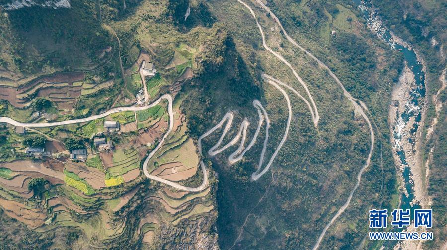 这是贵州毕节市黔西县太来彝族苗族乡的“组组通”硬化路(2019年3月21日摄,无人机照片)。 新华社记者 陶亮 摄