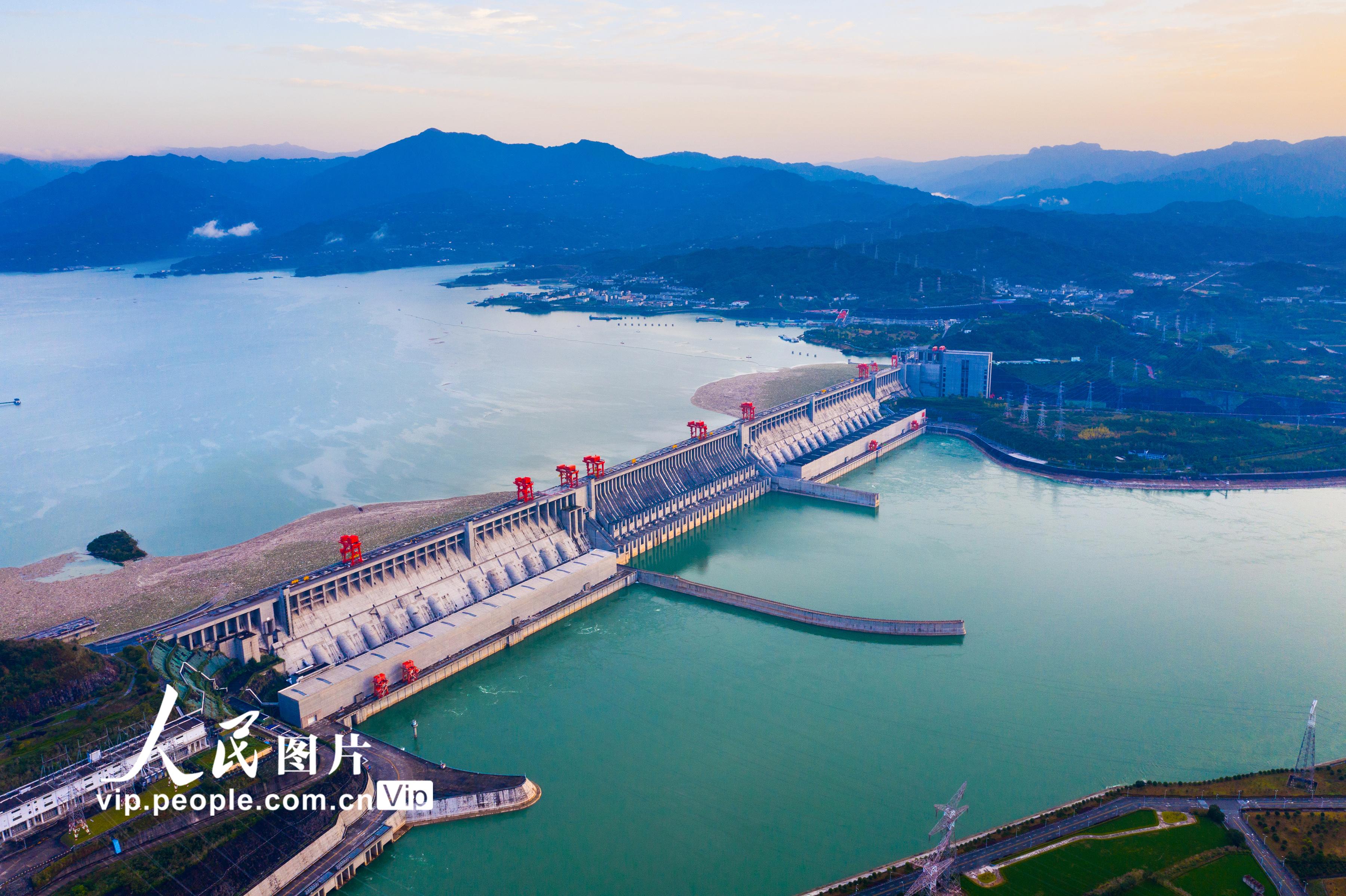 2020年10月21日,雨后初晴的三峡大坝。长江水文网实时水情显示:2020年10月21日8时三峡水库水位173.42米,入库流量20500立方米/秒,出库流量20400立方米/秒,这意味着三峡水库2020年175米试验性蓄水距离终点已经只有1.58米。郑坤/人民图片