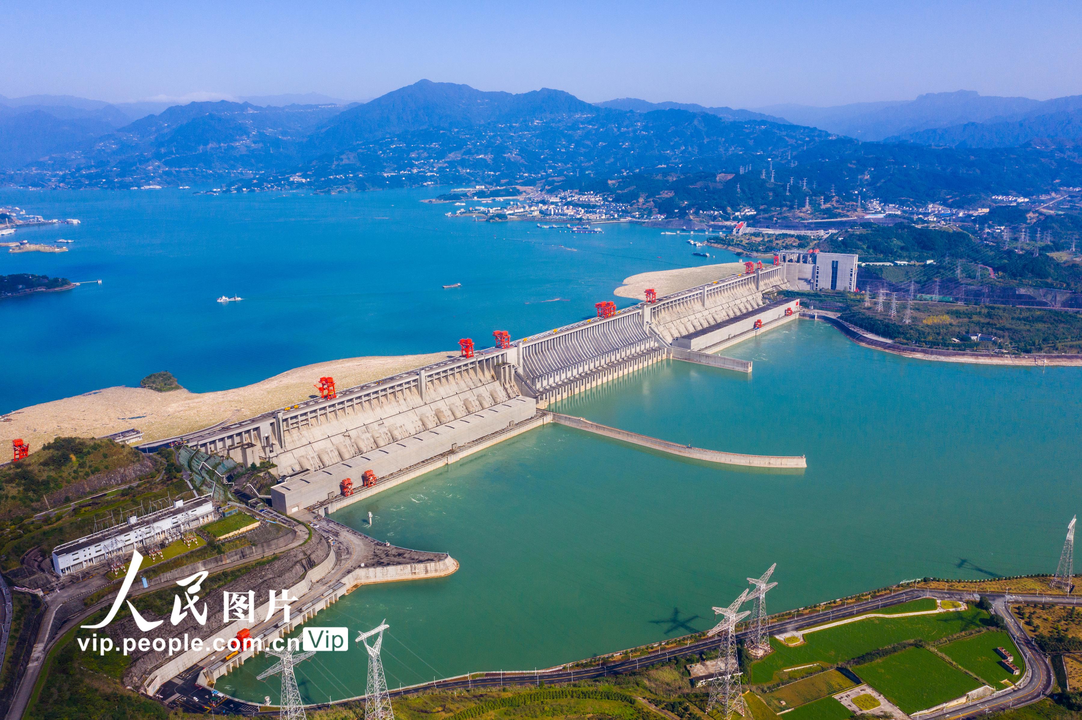 2020年10月21日,雨后初晴的三峡大坝。长江水文网实时水情显示:2020年10月21日8时三峡水库水位173.42米,入库流量20500立方米/秒,出库流量20400立方米/秒,这意味着三峡水库2020年175米试验性蓄水距离终点已经只有1.58米。郑坤/人民图片