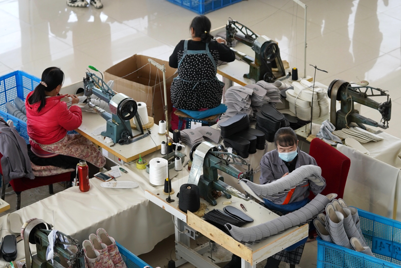 平地泉主车间于2018年12月正式招工,主车间涉及工种10余种,设置岗位20多种,可解决就业100人左右。平地泉主车间现日均生产拖鞋达到6000双左右,贫困户员工每月增加收入可达约3000元。工人日报记者 刘金梦摄