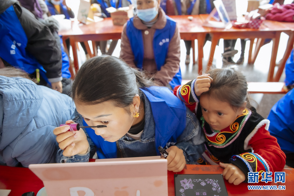 图为彝族年轻母亲在练习为自己化妆。新华网 郭小天 摄