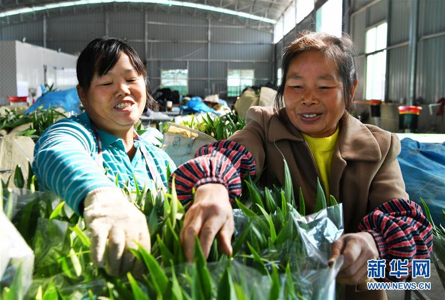 在周宁县浦源镇特色花卉种植园,浦源镇上洋村建档立卡贫困户陈华英(右)在种植园里打零工,她在2017年脱贫(10月23日摄)。 近年来,福建省宁德市周宁县在推进产业扶贫和乡村振兴过程中,依托当地农业资源和地理气候优势,打造特色扶贫种植、养殖基地,引导农民发展有机蔬菜、花卉苗木、有机水果等特色产业种植,通过土地流转、资金入股、劳务增收等多种形式,帮助贫困户脱贫,带动当地农民致富。 新华社记者魏培全摄
