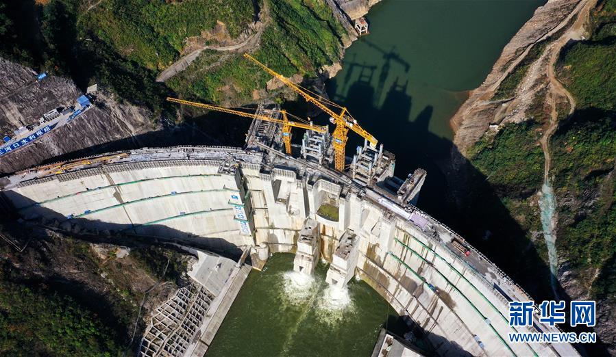 建设中的引汉济渭工程三河口水利枢纽(10月21日摄,无人机照片)。