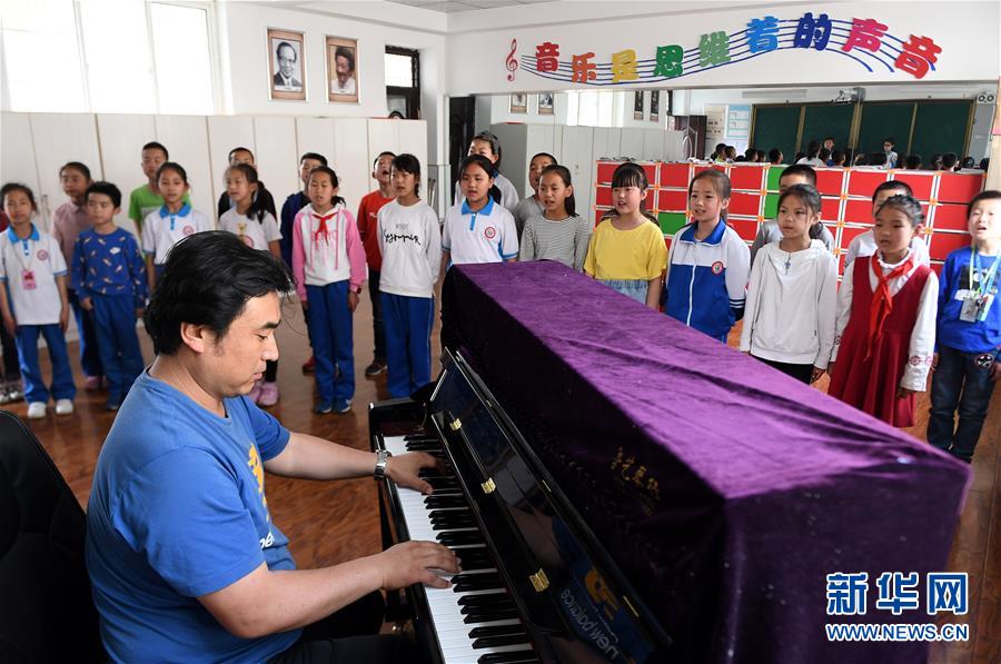 陕西省延安市杨家岭福州希望小学合唱社团的学生在合唱(2019年4月24日摄)。新华社记者 刘潇 摄