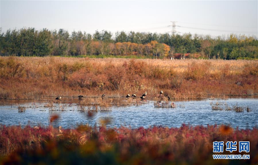 10月27日,一群斑嘴鸭在天津港保税区临港生态湿地公园内休憩。 经过两年的建设,天津港保税区临港生态湿地公园二期项目日前顺利完工,对外开放。据了解,临港生态湿地公园位于天津港保税区临港区域西部,总面积约183万平方米,其中,二期总面积约120万平方米。这里原本是一片盐碱荒滩,经过改造和建设,本地块的湿地生态功能得到了有效修复,为鸟类提供了适宜的栖息环境,也进一步完善了天津临港区域的生态环境。 新华社发(赵子硕 摄)