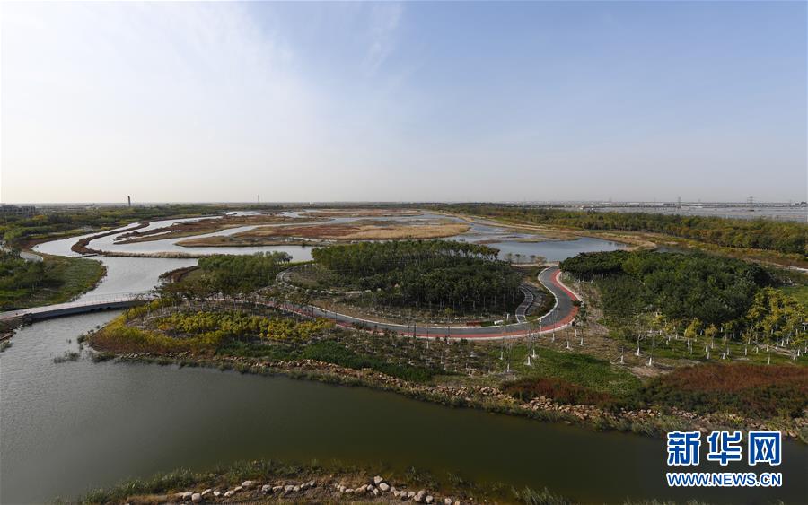 这是10月27日拍摄的天津港保税区临港生态湿地公园一景。 经过两年的建设,天津港保税区临港生态湿地公园二期项目日前顺利完工,对外开放。据了解,临港生态湿地公园位于天津港保税区临港区域西部,总面积约183万平方米,其中,二期总面积约120万平方米。这里原本是一片盐碱荒滩,经过改造和建设,本地块的湿地生态功能得到了有效修复,为鸟类提供了适宜的栖息环境,也进一步完善了天津临港区域的生态环境。 新华社发(赵子硕 摄)