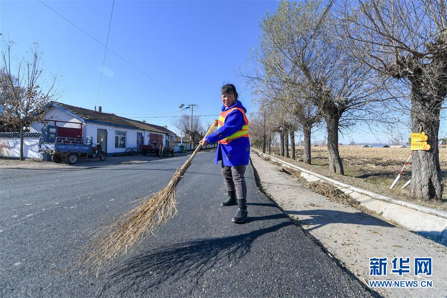 10月27日,在吉林省舒兰市溪河镇溪河村,环卫工人清扫今年竣工的村路。新华社记者 张楠 摄