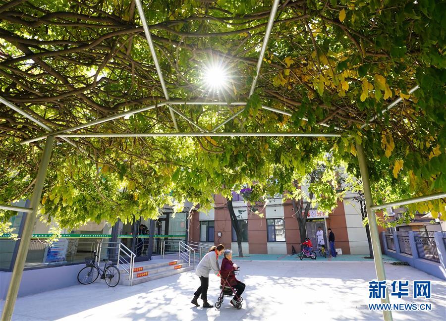 河北省唐山市路北区煤研分院社区幸福家园养老服务中心工作人员陪护一位老人在院内活动(10月24日摄)。 “十三五”时期,我国各项民生事业不断繁荣发展。2019年,九年义务教育巩固率达94.8%,高等教育毛入学率超过50%,劳动年龄人口平均受教育年限为10.7年。人民健康和医疗卫生水平不断提高,居民平均预期寿命2019年达77.3岁。 “保障和改善民生没有终点。”人们期待,以五年规划为起点,新的蓝图将描绘更亮丽的民生底色。 新华社记者 杨世尧 摄