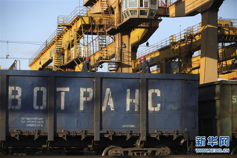 10月28日,在绥芬河铁路口岸换装现场,工人对从俄罗斯进口的煤炭进行换装作业。 作为我国对俄贸易的重要口岸,黑龙江绥芬河口岸铁路货运量持续增加。截至10月27日,绥芬河铁路口岸今年进出口运量完成800.9万吨,其中矿粉进口比去年同期增长64%。 新华社发(张涛 摄)