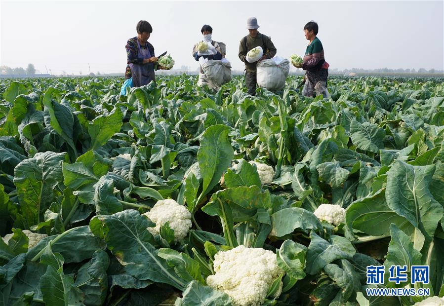 10月28日,乐亭县马头营镇黄坨村村民在田间收获菜花。 近年来,河北省唐山市乐亭县通过建设规模化生产基地、推行标准化管理技术、建立龙头企业开展集约化营销,积极引导农民发展菜花种植,取得良好效益。目前,该县菜花种植面积近3万亩,年产优质菜花10.5万吨。 新华社记者 杨世尧 摄