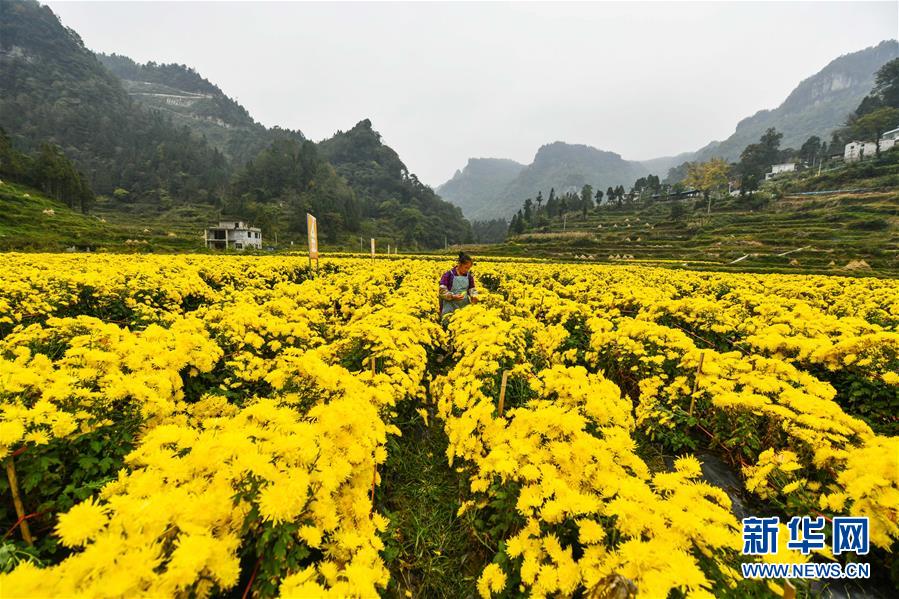 10月27日,村民在金溪村采摘金丝皇菊。新华社记者 杨文斌 摄
