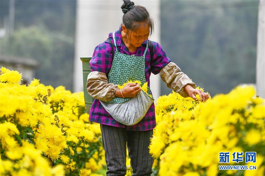 10月27日,村民在金溪村采摘金丝皇菊。新华社记者 杨文斌 摄