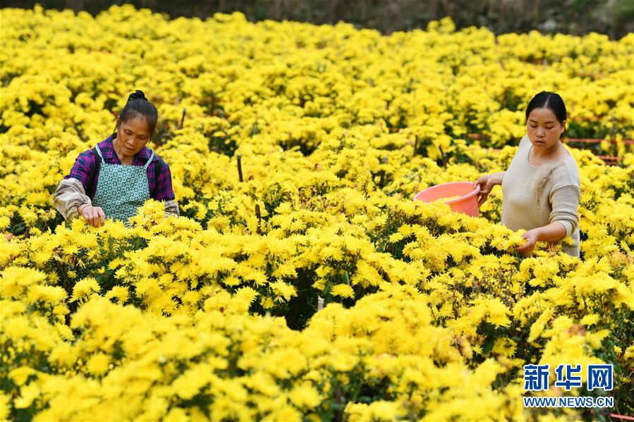 10月27日,村民在金溪村采摘金丝皇菊。新华社记者 杨文斌 摄