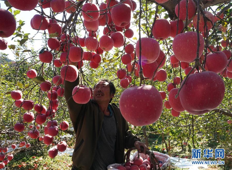 10月30日,昌黎县两山乡长峪山村的一名果农在自家果园采摘苹果。 近年来,地处燕山脚下的河北省昌黎县引导山区农民依托良好的自然生态环境和资源优势,发展林果产业,栽植苹果、葡萄、桃、梨、板栗等果树,成为远近闻名的“花果之乡”。据介绍,该县林果种植面积达14余万亩,年产果品20多万吨。 新华社记者 杨世尧 摄