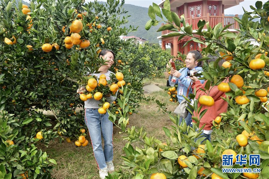 10月31日, 参加活动的嘉宾在湖南永州回龙圩管理区的一处柑橘果园拍照。 当日,第三届永州柑橘节在湖南省永州市回龙圩管理区举行。柑橘产业是当地精准扶贫的支柱产业,通过“合作社+贫困户+加工厂+果园”等帮扶模式,形成“村村有合作社、户户(贫困户)有果园”的局面,500余户贫困户获得产业扶贫的政策支持。 新华社记者 戚晓毅 摄