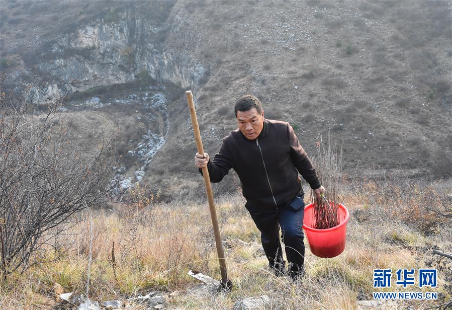 在山西省长治市平顺县西沟村外的一座山坡上,众新源脱贫攻坚造林专业合作社负责人常永红上山植树(10月29日摄)。 山西省长治市平顺县西沟村诞生过全国首个农村互助组和较早一批的农业合作社,是小说《三里湾》故事的原型之一。新时代的西沟村人继续发扬“勇于开拓、艰苦奋斗”的精神,在社会主义新农村建设中书写着新的传奇故事。 新华社发(柴婷摄)
