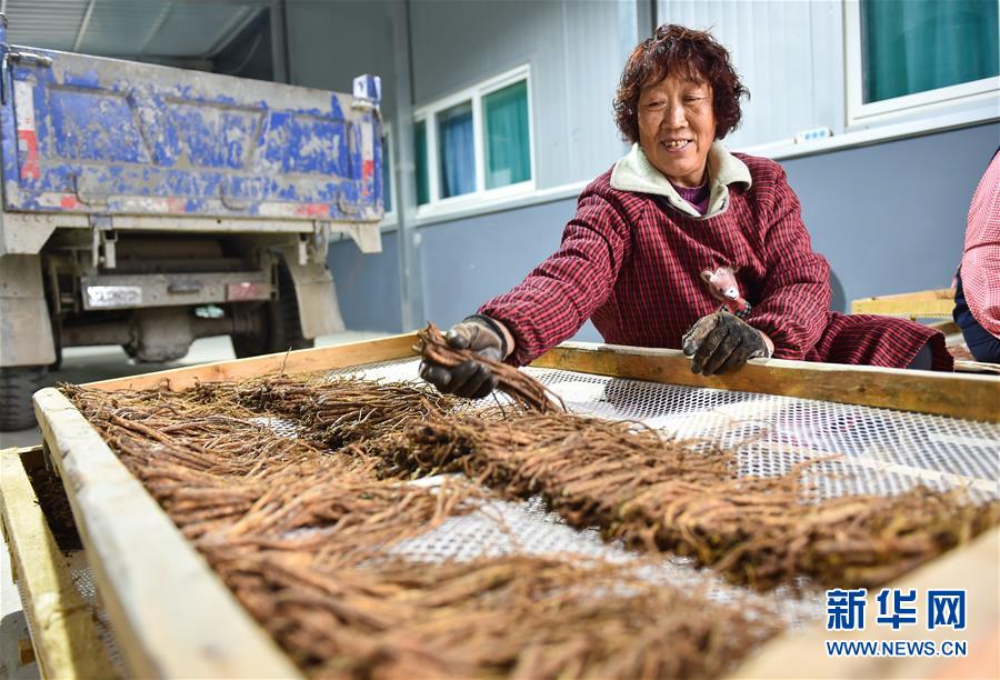 在山西省长治市平顺县西沟村的绿源春农业综合开发有限公司,村民在分拣党参(10月28日摄)。 山西省长治市平顺县西沟村诞生过全国首个农村互助组和较早一批的农业合作社,是小说《三里湾》故事的原型之一。新时代的西沟村人继续发扬“勇于开拓、艰苦奋斗”的精神,在社会主义新农村建设中书写着新的传奇故事。 新华社发(柴婷摄)