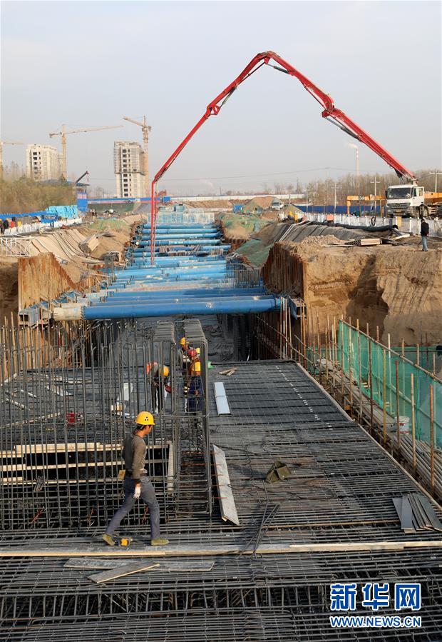 10月31日,工人在河北省张家口市宣化区滨河新城地下综合管廊工程现场施工。 自2019年8月开工以来,总投资120亿元的河北省张家口市宣化区滨河新城项目建设加紧施工中。该项目是宣化区“保护古城、疏解老城、建设新城”的政府和社会资本合作的大型城建类项目。作为其配套工程,滨河新城地下综合管廊工程施工稳步推进。管廊工程按双舱管廊设计,内设给水管线、热力管线、电力管线和通信管线等,总长约2300米。 新华社发(武殿森 摄)
