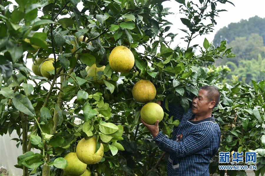 10月31日,遵义市槐安仁慧果蔬专业合作社的社员在地里采摘柚子。 近日,贵州省遵义市近10万亩柚子迎来丰收,村民们忙着采收转运。近年来,遵义市大力培育家庭农场、农业专业合作社等新型农业经营主体,建立“一村一品”农业体系,助力乡村振兴。 新华社发(罗星汉 摄)