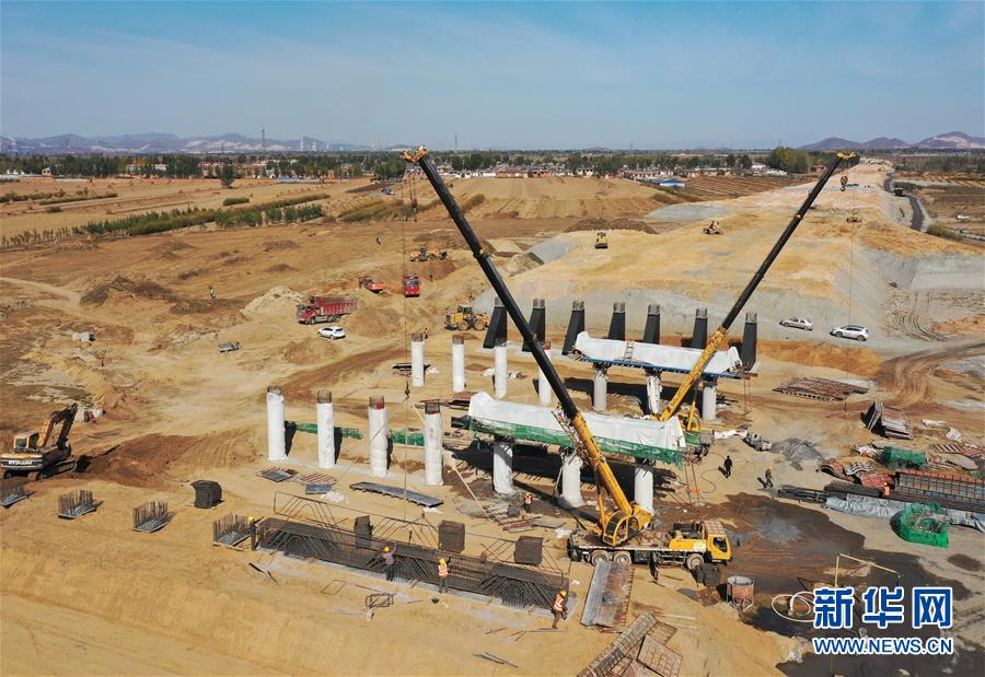 11月1日,工人在滦州市东安各庄镇境内的迁曹高速公路建设工地施工(无人机照片)。 近日,河北省滦州市境内的迁(迁安)曹(曹妃甸)高速公路建设正在按照节点要求稳步推进。据介绍,迁曹高速公路项目是京津冀交通一体化建设的重要项目,起于京哈高速公路迁安支线与京哈高速公路交叉处的沙河驿枢纽互通,向南跨越沿海高速公路,止于曹妃甸新港工业区装备制造区,路线全长约92公里。 新华社记者杨世尧摄