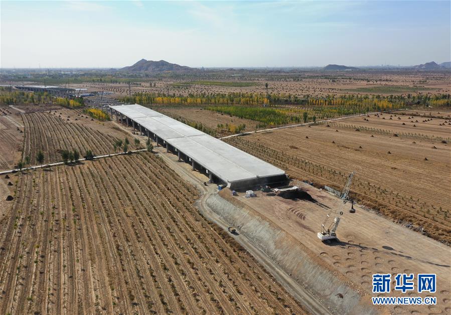 11月1日,工人在滦州市东安各庄镇境内的迁曹高速公路建设工地施工(无人机照片)。 近日,河北省滦州市境内的迁(迁安)曹(曹妃甸)高速公路建设正在按照节点要求稳步推进。据介绍,迁曹高速公路项目是京津冀交通一体化建设的重要项目,起于京哈高速公路迁安支线与京哈高速公路交叉处的沙河驿枢纽互通,向南跨越沿海高速公路,止于曹妃甸新港工业区装备制造区,路线全长约92公里。 新华社记者杨世尧摄