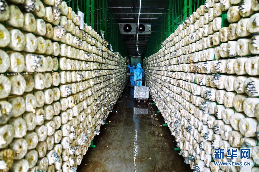 11月1日,工人在河北省威县国家农业科技园区一家企业的食用菌培育工厂内采摘秀珍菇。新华社记者 牟宇 摄