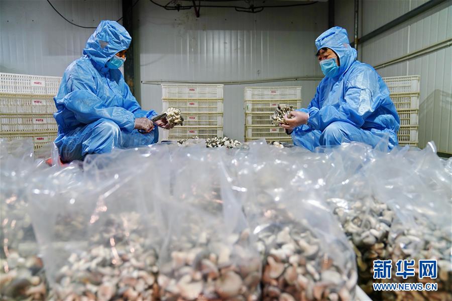 11月1日,工人在河北省威县国家农业科技园区一家企业的食用菌培育工厂内加工食用菌。新华社记者 牟宇 摄