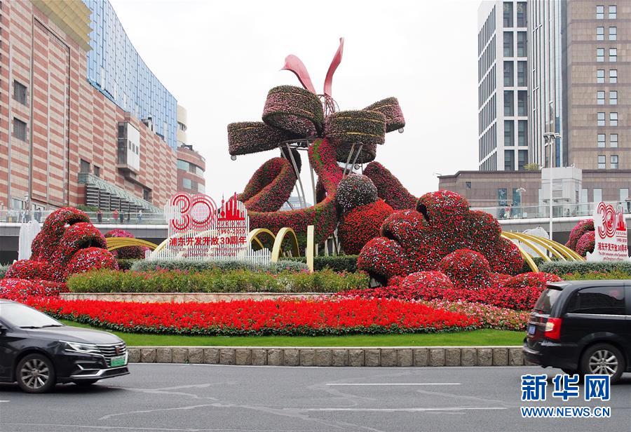 “浦东开发开放30周年”大型立体花坛现身上海街头