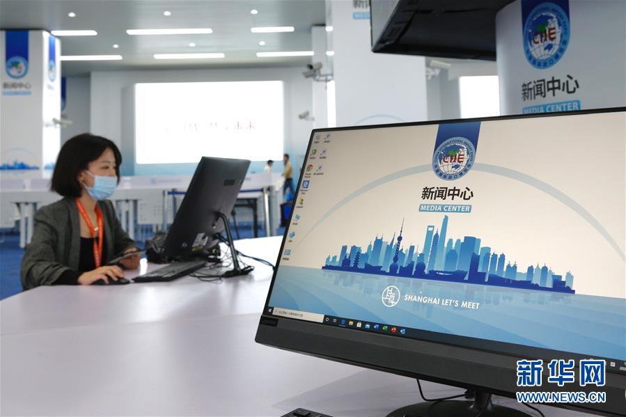 11月3日,记者在新闻中心内工作。 第三届中国国际进口博览会新闻中心已正式开始运营。 新华社记者 张玉薇 摄