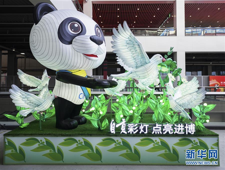 11月3日在国家会展中心(上海)拍摄的彩灯。 第三届中国国际进口博览会现场的多处彩灯为展会增添了色彩与魅力。 新华社记者 张豪夫 摄