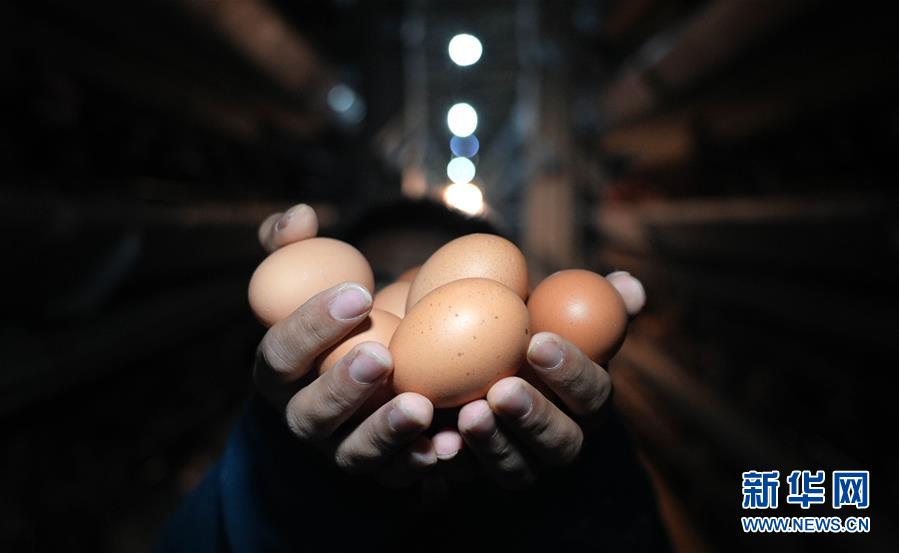 11月4日,在延安劳山鸡业有限责任公司,工作人员在展示鸡蛋。 延安劳山鸡业有限责任公司位于陕西省延安市甘泉县劳山乡劳山村,是集养殖、蛋品加工等为一体的企业。该公司从2012年起配合县残联开展扶残助残活动,吸纳残疾人就业,通过培训提高残疾人养殖技术,让残疾人养殖户自食其力逐步增收。 新华社记者 才扬 摄
