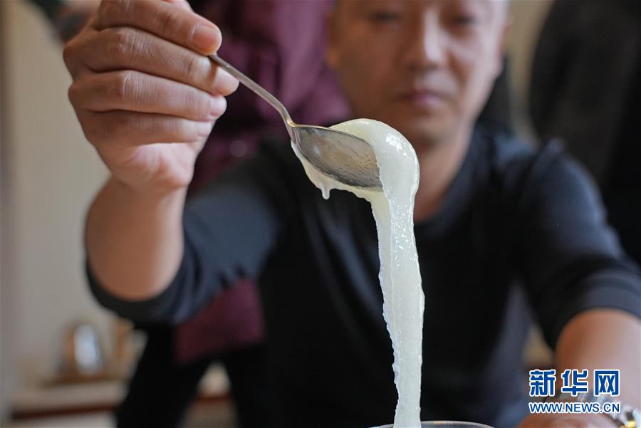 11月4日,在延安市宝塔区姚店镇谭家湾村,残疾人蜂农史志刚的儿子展示家里的槐花蜜。 2017年以来,陕西省延安市宝塔区残联立足区域自然条件,结合残疾人实际情况,把养蜂作为脱贫攻坚的突破口,积极探索残疾人养蜂的“甜蜜”事业,现已发展蜂农100户,蜂群存栏近2000群。 新华社记者 才扬 摄