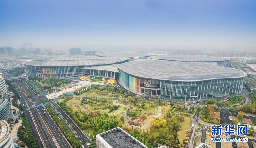 黄浦江畔,第三届中国国际进口博览会拉开帷幕。新华网发