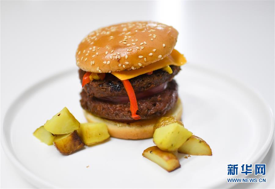 嘉吉展台上用“植物肉”制作的汉堡包(11月5日摄)。 在第三届中国国际进口博览会食品及农产品展区,来自全球的各种美食既吸引眼球,又满足味蕾。 新华社记者 陈晔华 摄
