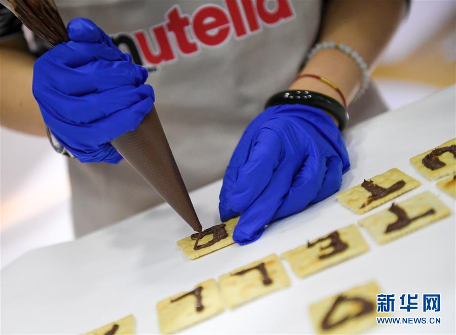11月5日,工作人员在费列罗展台制作巧克力甜品。 在第三届中国国际进口博览会食品及农产品展区,来自全球的各种美食既吸引眼球,又满足味蕾。 新华社记者 陈晔华 摄