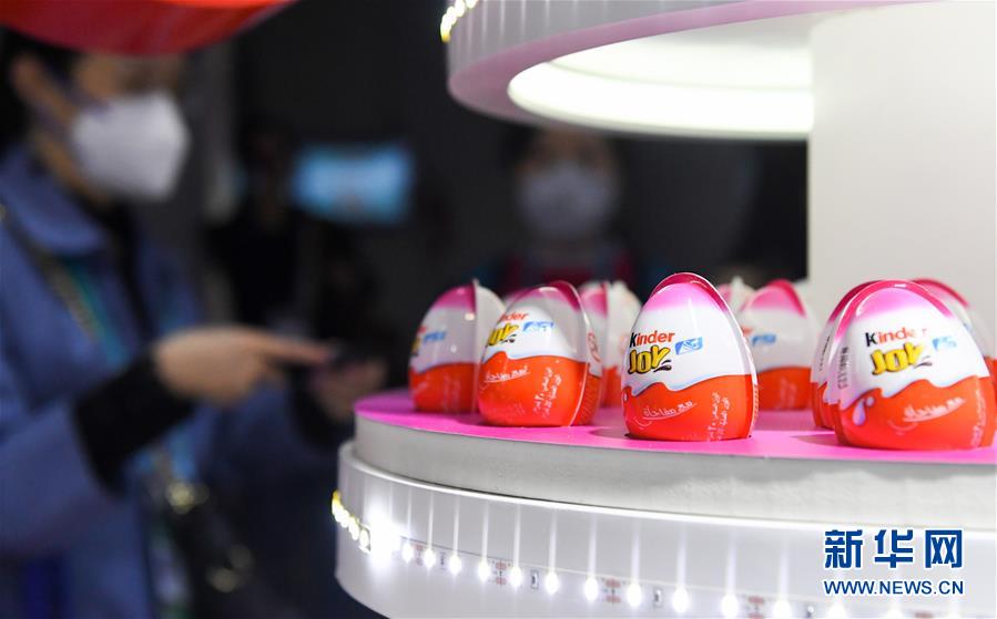 11月5日,观众在费列罗展台旁参观。 在第三届中国国际进口博览会食品及农产品展区,来自全球的各种美食既吸引眼球,又满足味蕾。 新华社记者 陈晔华 摄