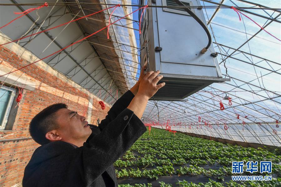 11月5日,在吉林省松原市宁江区善友镇新家村扶贫大棚内,农民张洪波在调整供热系统。 时值深秋,吉林省大田秋收工作已至尾声,但在松原市宁江区善友镇新家村的扶贫大棚里,新一轮生产正在进入旺季。 2018年,新家村在政府扶贫资金的帮助下建起7栋温室大棚,由村里一家农业合作社按季节进行种植经营。2019年,新家村的扶贫大棚实现每月有产品,四季能丰收,共产出香瓜、小番茄、草莓等产品约3万斤。 新华社记者 张楠 摄