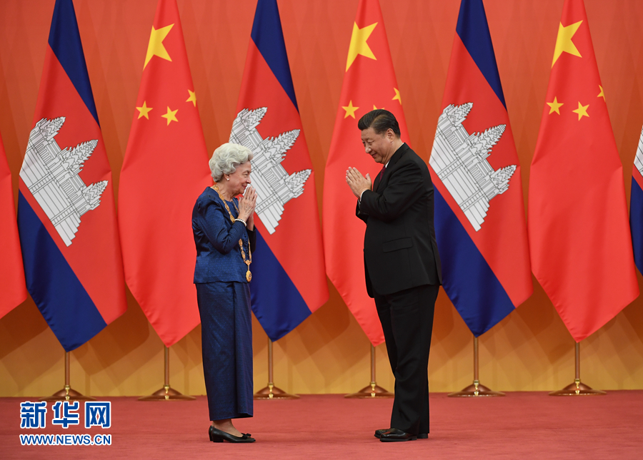 习近平为柬埔寨太后莫尼列举行中华人民共和国“友谊勋章”颁授仪式