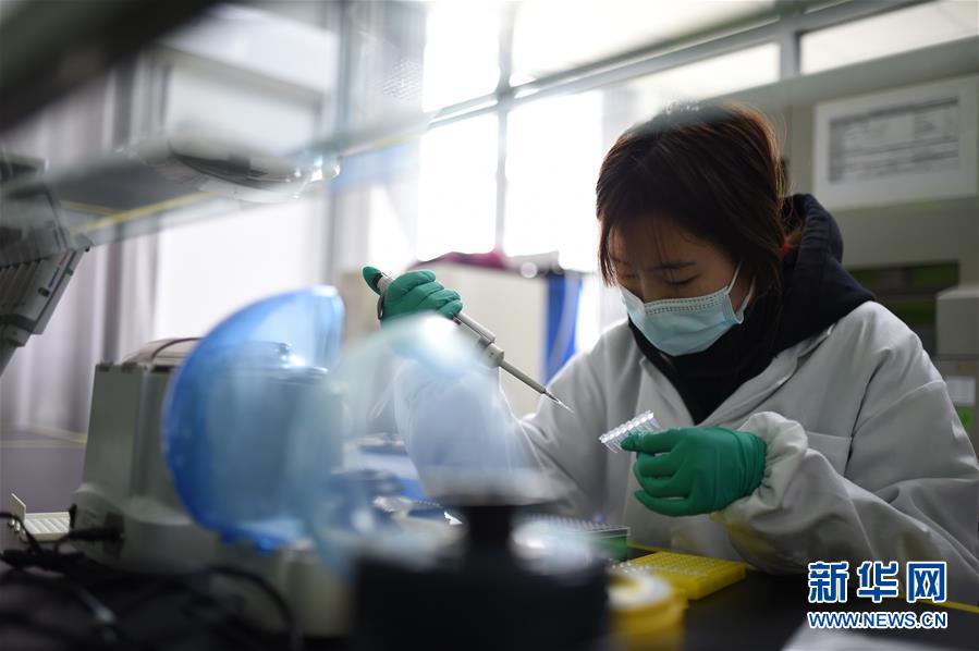 在宁夏盐池滩羊集团的高标准屠宰加工厂内,工作人员对滩羊进行基因检测(11月2日摄)。新华社记者 戴天放 摄