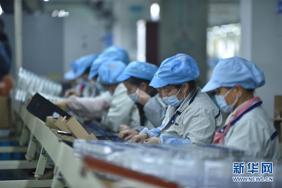 11月6日,在贵州省丹寨县金钟经济开发区一家电子产品加工企业,搬迁群众在加工电子产品。 近年来,贵州省黔东南苗族侗族自治州丹寨县金钟经济开发区持续加大易地扶贫搬迁群众的就业扶持力度,着力引进、新建30余家扶贫工厂,确保搬迁群众搬得出、稳得住、能致富。截至2020年10月,开发区已吸纳1200余名搬迁群众在扶贫工厂稳定就业。 新华社发(凯尚宇 摄)
