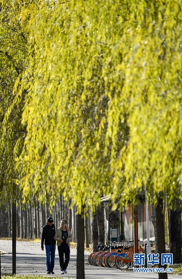 11月7日,在西宁市湟水河湿地公园,市民在散步。 当日是立冬节气,西宁市天气晴好,市民走出家门享受冬日暖阳。近年来,西宁市大力开展工业减排、产业升级,推进植树披绿、环境美化,空气质量逐年提升。 新华社记者 张龙 摄