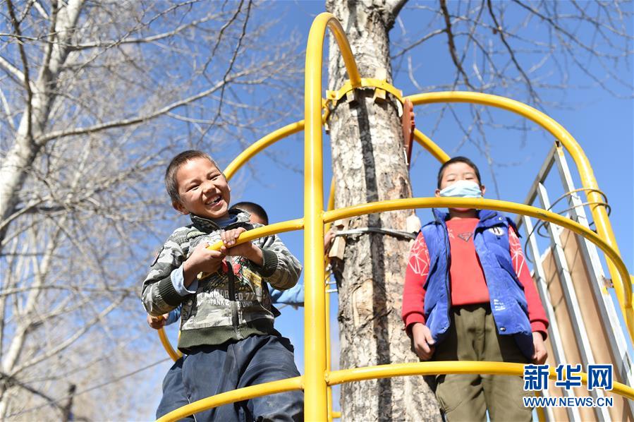 11月6日,孩子们在班彦新村里的游乐设施上玩耍。 青海省海东市互助土族自治县属于六盘山集中连片特困地区。行路难、用水难、上学难,是互助县五十镇班彦村百姓多年来的心病。四年前,受益于易地扶贫搬迁政策,村民们整体搬迁到山下统一规划、统一建设的新村。这里水、电、天然气等一应俱全,太阳能路灯一字排开,房屋错落有致,塑胶篮球场、休闲广场、栈道花园等点缀其间。村口还建起了生产土族盘绣的扶贫车间,人们唱着“花儿”,在盘绣中绣着花儿,幸福的生活就像花儿一样。 新华社记者 戴天放 摄