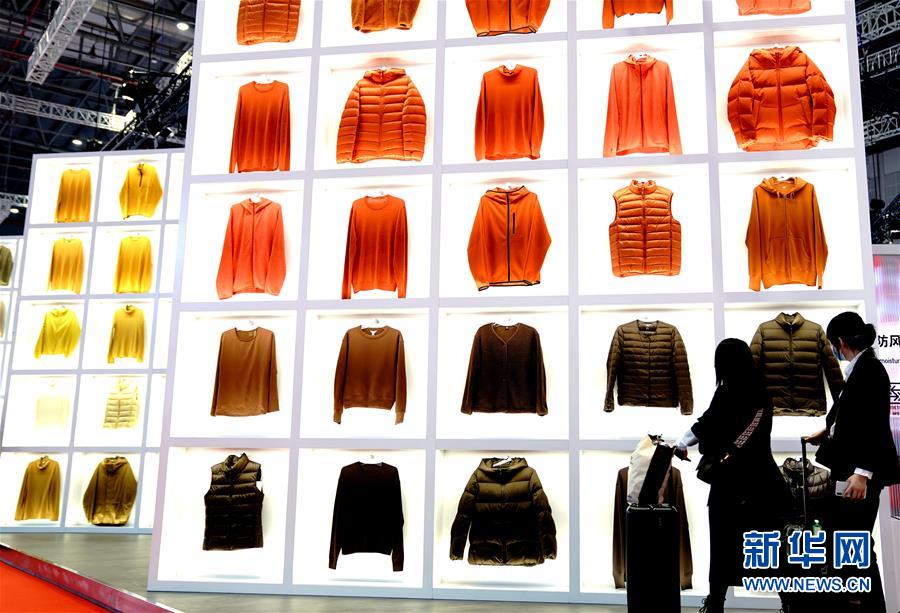 11月7日,观众在消费品展区参观服装展品。 第三届中国国际进口博览会的消费品展区面积9万平方米,展区汇集各种“酷”科技与“最”潮流,展现了人们对美好生活的期待,受到参观者青睐。 新华社记者 张建松 摄