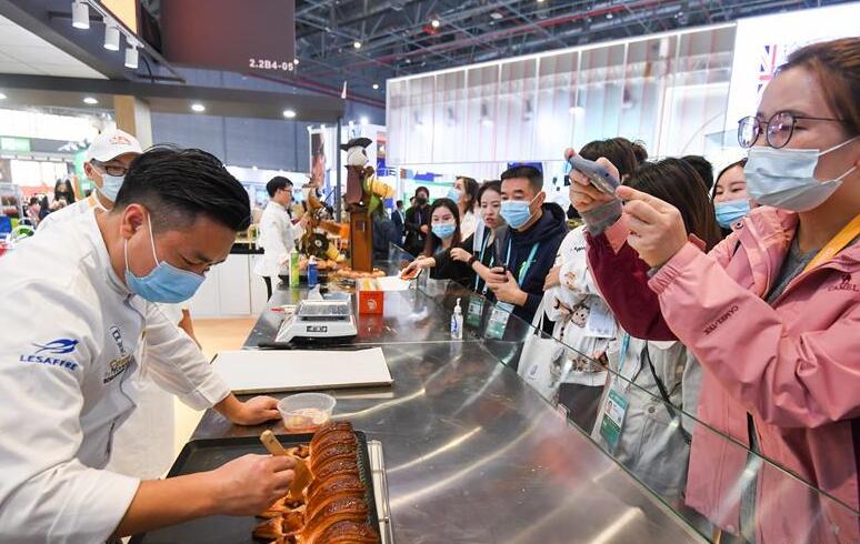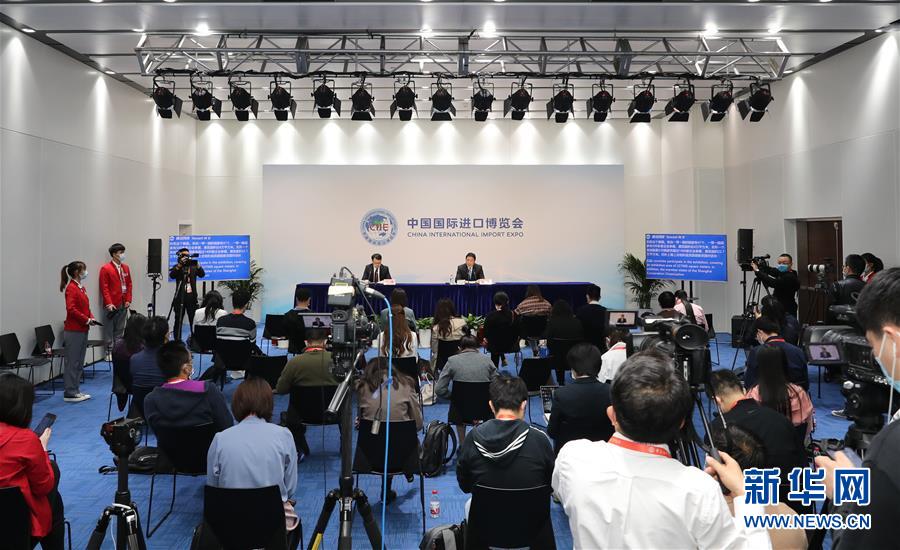 11月8日,第三届进博会展中新闻通气会在位于国家会展中心(上海)的进博会新闻中心举行。 中国国际进口博览局副局长孔福安在会上介绍了第三届进博会开幕以来在展览展示、配套活动、洽谈签约和新品发布等方面的进展情况。 新华社记者 方喆 摄