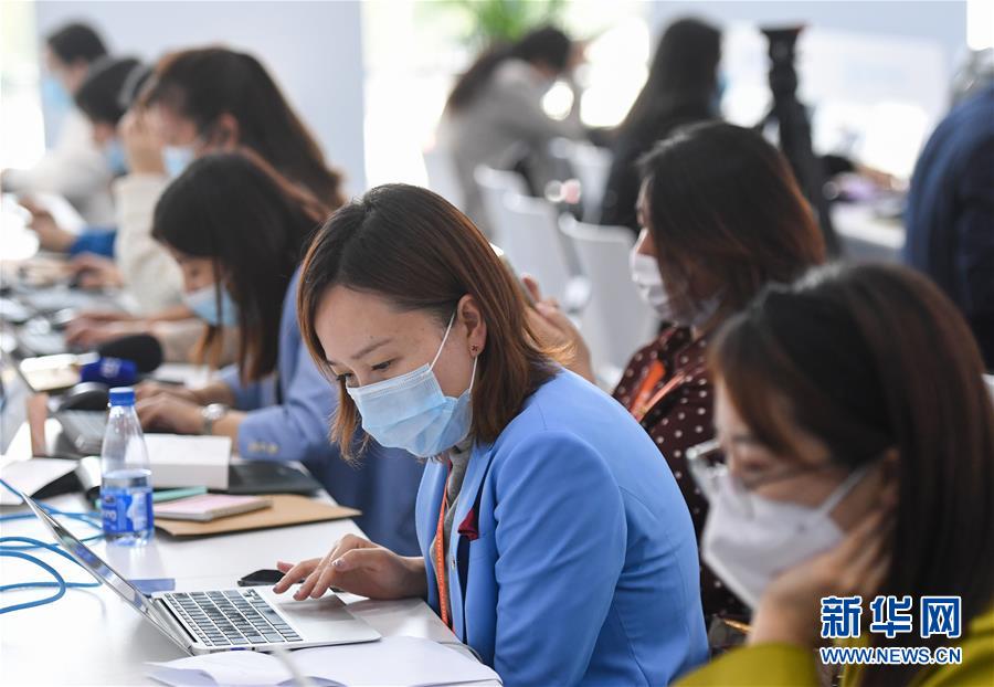 11月8日,媒体记者在第三届进博会新闻中心工作。新华社记者 陈晔华 摄