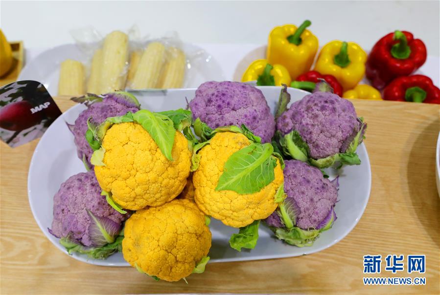 这是11月7日在进博会食品及农产品展区先正达展台拍摄的彩色蔬菜。新华社记者 方喆 摄