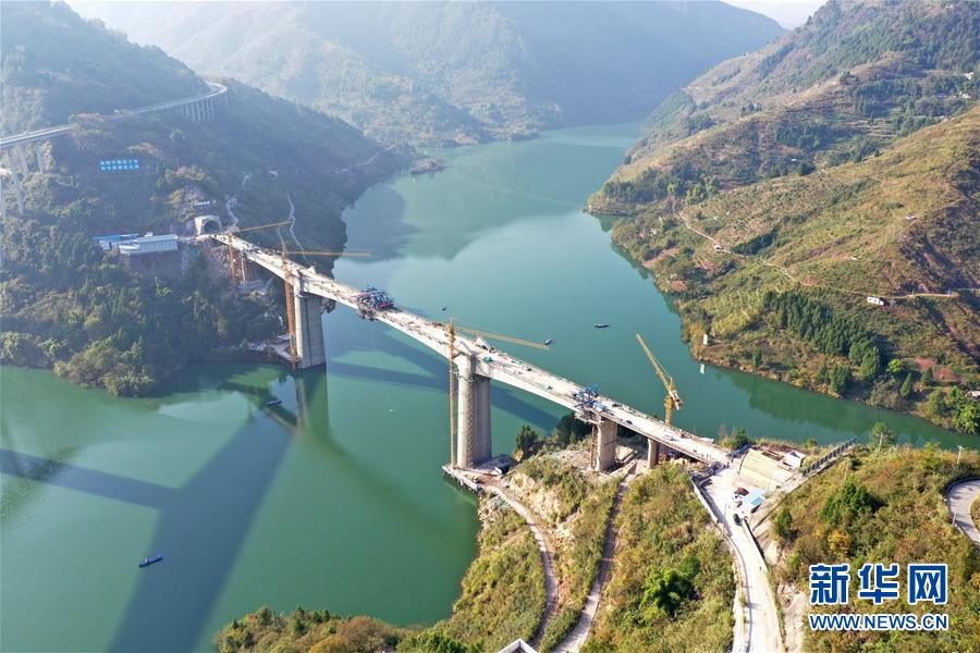 这是11月8日拍摄的郑万高铁重庆段汤溪河双线大桥合龙施工现场。 11月8日,郑万高铁重庆段全线控制性工程汤溪河双线大桥合龙,标志着郑万高铁建设取得重要进展,为全线路顺利贯通打下坚实基础。 汤溪河双线大桥位于重庆市云阳县云阳镇境内,桥梁全长472.7米,为双线高速铁路大桥。据了解,河南郑州到重庆万州的郑万高铁全长818公里,是西南地区连接华中和华北的主要高速客运通道。 新华社记者 唐奕 摄