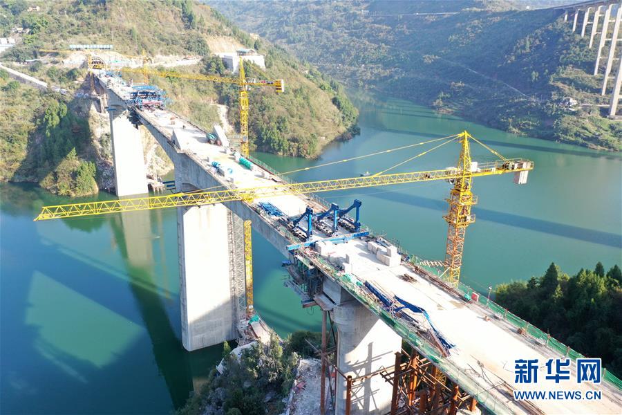 这是11月8日拍摄的郑万高铁重庆段汤溪河双线大桥合龙施工现场。 11月8日,郑万高铁重庆段全线控制性工程汤溪河双线大桥合龙,标志着郑万高铁建设取得重要进展,为全线路顺利贯通打下坚实基础。 汤溪河双线大桥位于重庆市云阳县云阳镇境内,桥梁全长472.7米,为双线高速铁路大桥。据了解,河南郑州到重庆万州的郑万高铁全长818公里,是西南地区连接华中和华北的主要高速客运通道。 新华社记者 唐奕 摄
