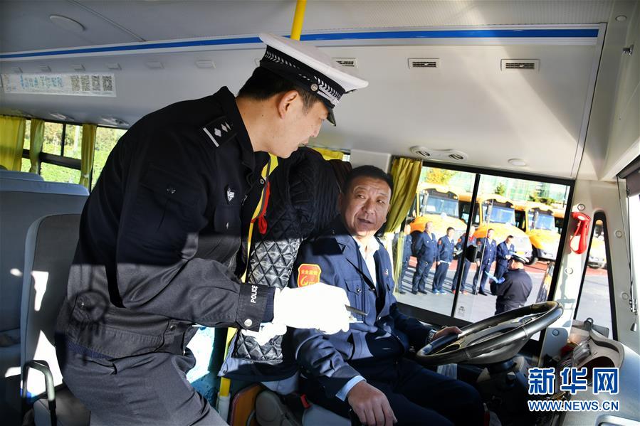 11月9日,青岛市南交警大队民警对校车驾驶员资质进行核对。新华社记者 李紫恒 摄